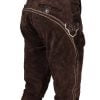 You buy here a beautiful, hand-made traditional leather trousers made of the finest suede leather in dark brown from our traditional costume and club clothing assortment. It is the classic among traditional leather pants for the top price. Whether Munich Beer Festival or festive occasions, it always fits. This costume leather pants is to understand with an elaborate embroidery. Delivery includes matching straps that are adjustable in size and that you can customize. The leather pants have 2 front pockets, a back pocket and a side-mounted knife pocket. The leather is reinforced with an insert. In addition, a lining made of polyester is incorporated. With a small lacing, which runs through eyelets, you can vary the waistband and the leg width suitably. The pants have belt loops.