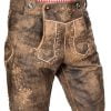 - Bayrische Trachtenlederhose kurz in modern antik look aus echt qualitativen Lammleder