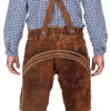 - Kurze Bayerische Premium Trachtenlederhose für das Oktoberfest in dunkelbraun